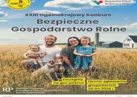 2026-03-17 XXIII Ogólnokrajowy Konkurs Bezpieczne Gospodarstwo Rolne Uprzejmie informujemy, że Kasa Rolniczego Ubezpieczenia Społecznego uruchomiła kolejną edycję Ogólnokrajowego Konkursu „Bezpieczne Gospodarstwo Rolne”. Konkurs ma na celu promocję zasad ochrony zdrowia i życia w gospodarstwie rolnym. Skierowany jest do właścicieli gospodarstw indywidualnych, zarówno do tych dużych jak i małych, w których przywiązuje się dużą wagę do bezpieczeństwa pracy. Zgłoszenia będą przyjmowane do dnia 30.04.2026 r.