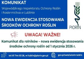 2026-01-01 Komunikat dla rolników - nowa ewidencja stosowania środków ochrony roślin od 1 stycznia 2026 Uprzejmie informujemy, że od 1 stycznia 2026 r. wchodzi w życie ustawa z dnia 21 listopada 2025 r. o zmianie ustawy o środkach ochrony roślin (Dz. U. z 2025 r., poz. 1697), wprowadzająca zmiany w zakresie prowadzenia dokumentacji stosowanych środków ochrony roślin (ewidencji zabiegów). Nowe przepisy opierają się na rozporządzeniu Komisji (UE) 2023/564 z dnia 10 marca 2023 r., które określa treść i format dokumentacji prowadzonej przez użytkowników profesjonalnych.