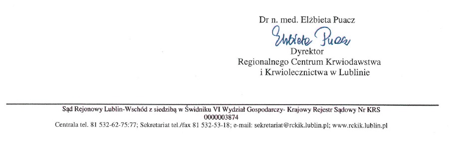 Oddawanie krwi jest bezpieczne i bezbolesne, a stasowany sprzęt jest sterylny i jednorazowy. Przed oddaniem krwi wykonuje się wstępne badanie laboratoryjne i lekarskie, pozwalające ocenić stan zdrowia dawcy. Krew oddawać mogą osoby zdrowe pomiędzy 18 a 65 rokiem życia. Do oddania krwi należy zgłosić się po lekkim posiłku wraz z dokumentem tożsamości ze zdjęciem. Po więcej danych odsyłamy na naszą stronę internetową http://rckik.lublin.pl/