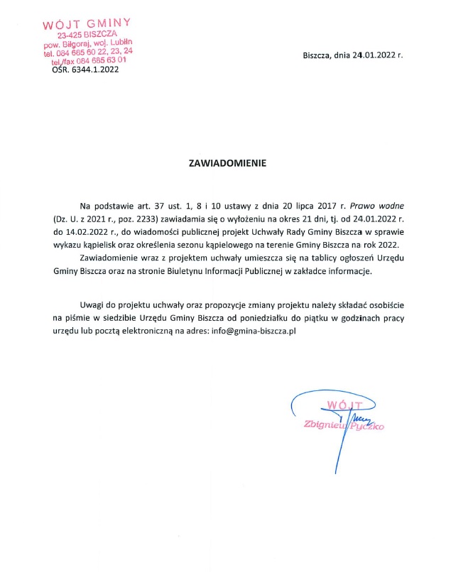 Informacja kąpielisko Biszcza-Żary 2022-01-24 Dokumenty do pobrania: mapa - lokalizacja Projekt Uchwała 2022 Formularz konsultacji Zawiadomienie OŚR.6344.1.2022 « powrót