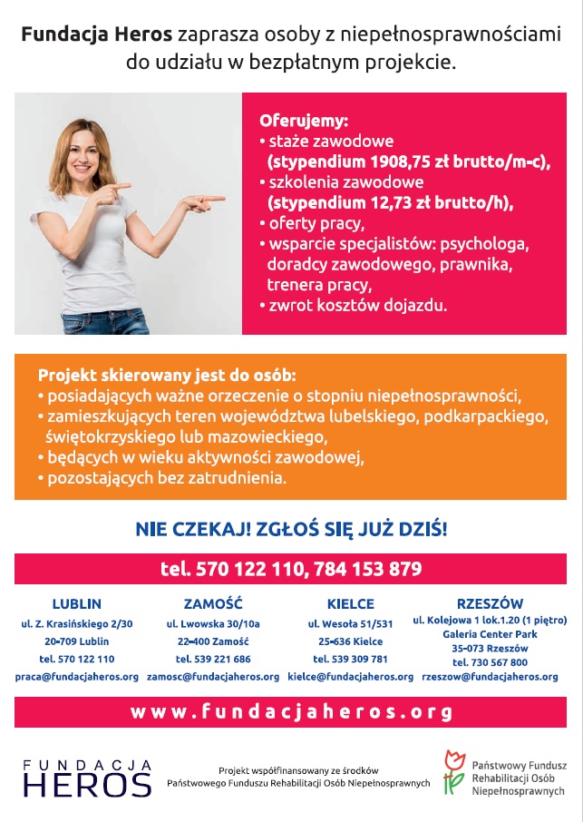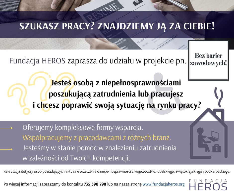 Fundacja Heros zaprasza osoby z niepełnosprawnościami do udziału w bezpłatnym projekcie. 2022-05-17 « powrót