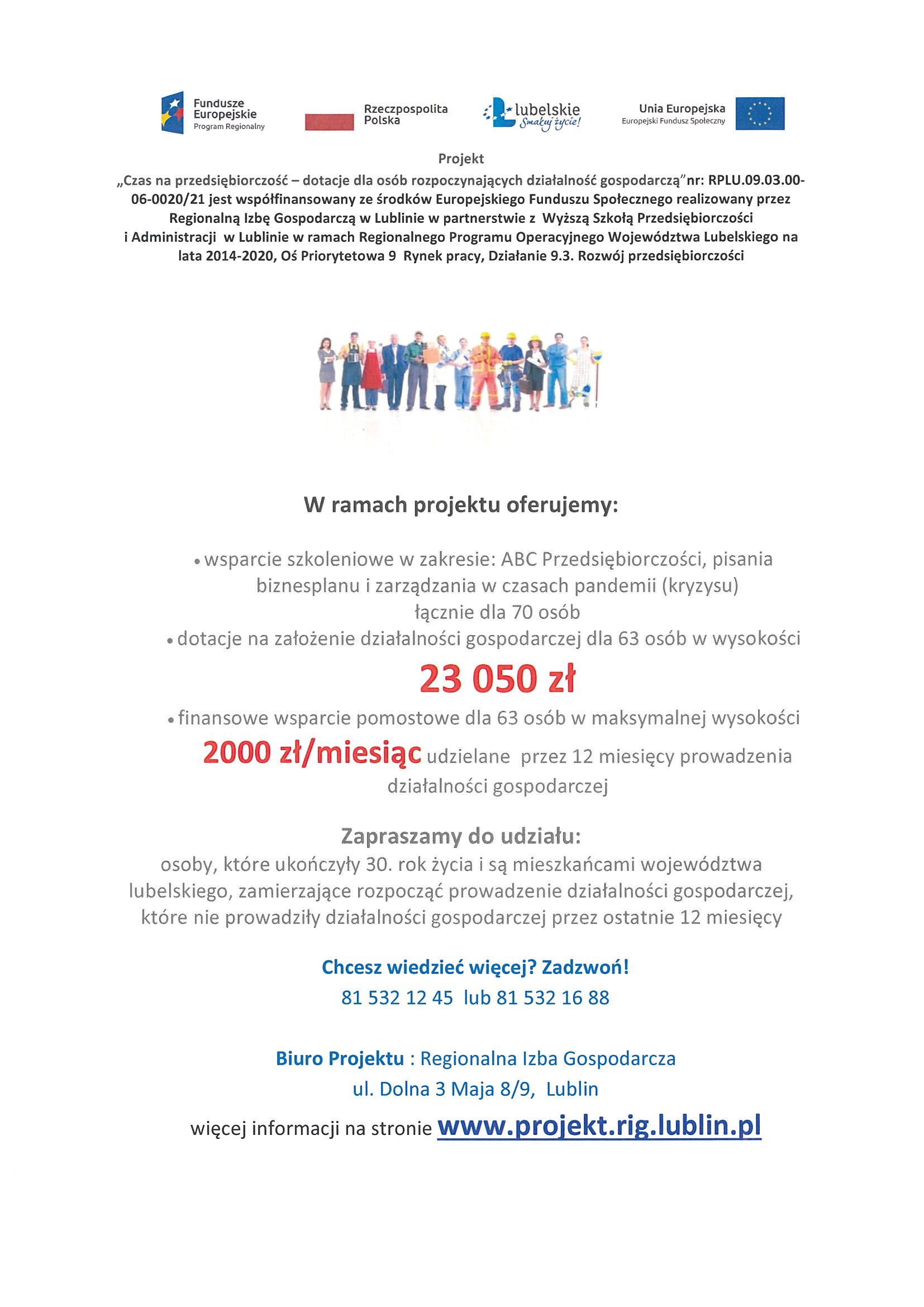Projekt: „Dotacja na otwarcie działalności gospodarczej"