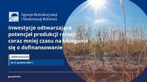 Inwestycje odtwarzające potencjał produkcji rolnej - nabór od 3 stycznia do 30 grudnia 2022 r.