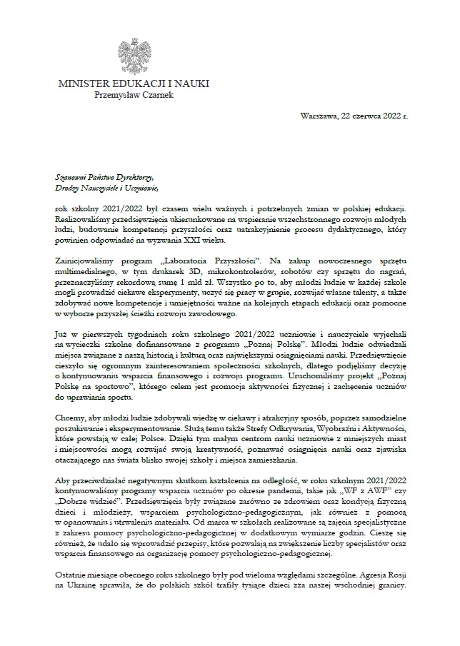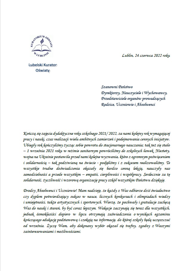 Zakończenie roku szkolnego 2021/2022 2022-06-24 List LKO na zakończenie roku szkolnego 2021.22 List zakonczenie roku szkolnego 20212022 « powrót