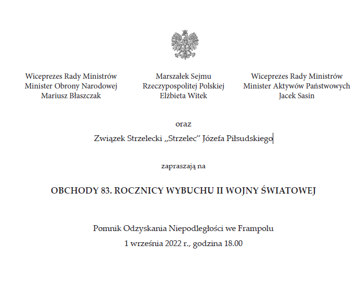 Zaproszenie na obchody 83. rocznicy wybuchu II wojny światowej