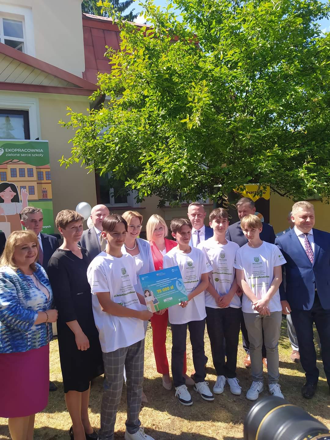 5 czerwca 2023 r. Wójt Gminy Biszcza Pan Zbigniew Pyczko wraz z przedstawicielami szkoły, p.o. dyrektor Jolanta Perczyńska, p. Marta Swacha, Mikołaj Bulicz, Sebastian Petlak, Rafał Maziarz, Krystian Dyjak, uczestniczyli w obchodach Światowego Dnia Ochrony Środowiska w ogrodzie WFOŚiGW, gdzie zorganizowano piknik ekologiczny dla dzieci i młodzieży. Podczas pikniku otrzymaliśmy od Pani Anny Moskwa Minister Klimatu i Środowiska symboliczny czek na realizacje projektu.