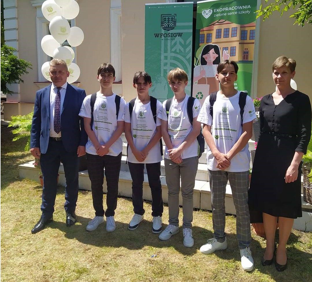 Organizator Konkursu -Wojewódzki Fundusz Ochrony Środowiska i Gospodarki Wodnej w Lublinie w ramach Programu Regionalnego Wsparcia Edukacji Ekologicznej - Fundusz Ekologii ogłosił nabór na ekopracownie dla szkół podstawowych i ponadpodstawowych. W wyniku I etapu nasza szkoła została zakwalifikowana do otrzymania dofinansowania i dopuszczona do II etapu konkursu. Po złożeniu wniosku organu prowadzącego szkołę otrzymała voucher jako laureat konkursu Ekopracownia – zielone serce szkoły.