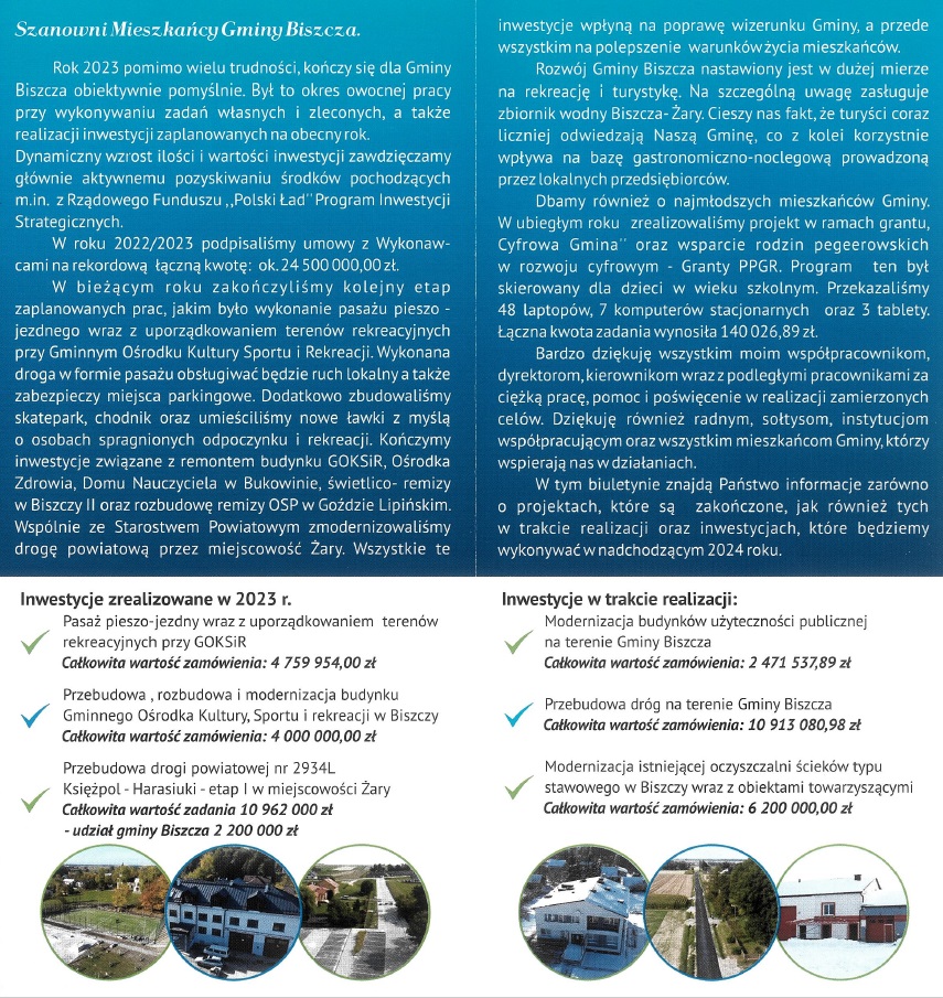 Poprawa stanu wód powierzchniowych i podziemnych na terenie Gminy Biszcza poprzez budowę 87 przydomowych oczyszczalni ścieków