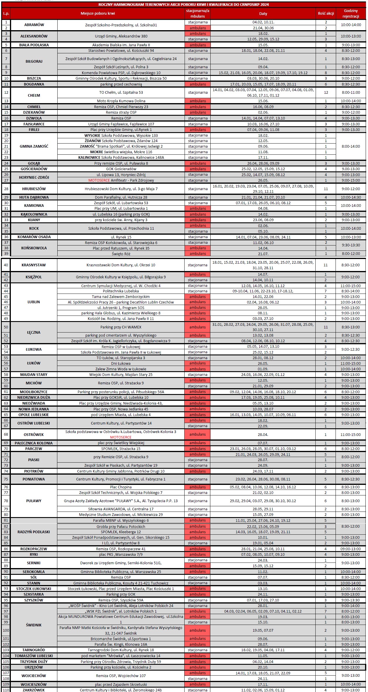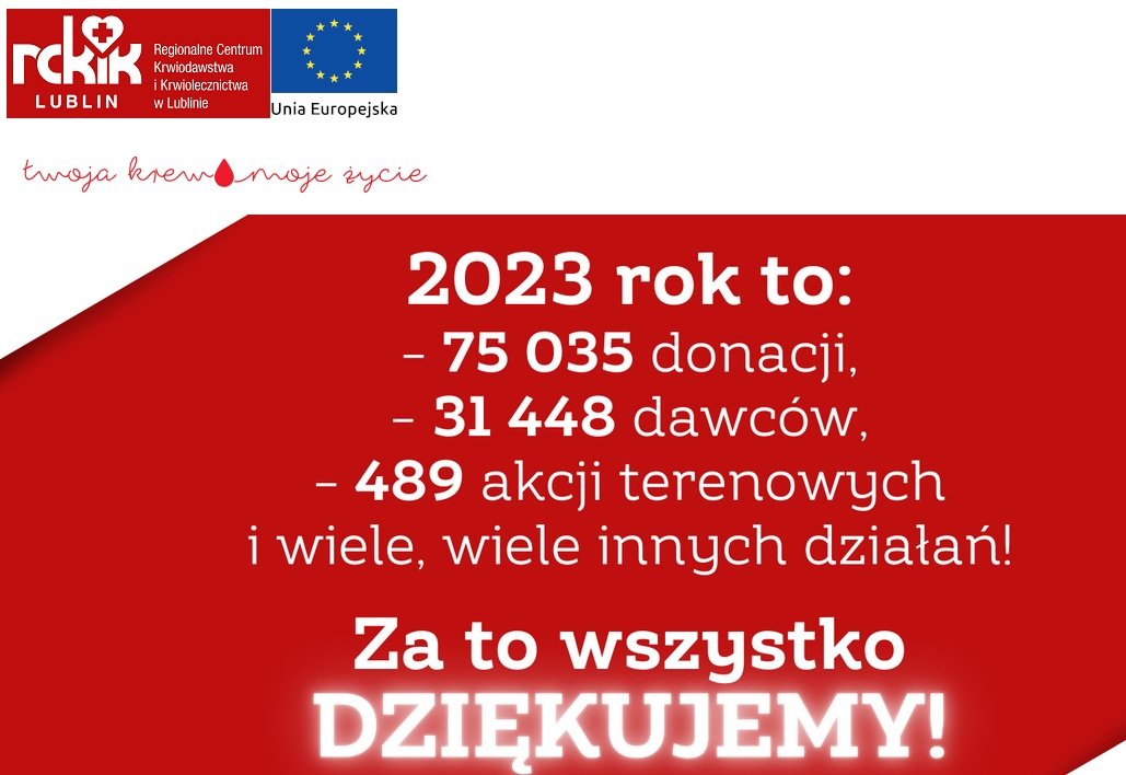 Informacja o organizowanych przez RCKiK Lublin terenowych akcjach poboru krwi. 2024-01-12 https://www.rckik.lublin.pl/ https://www.facebook.com/rckiklublin « powrót