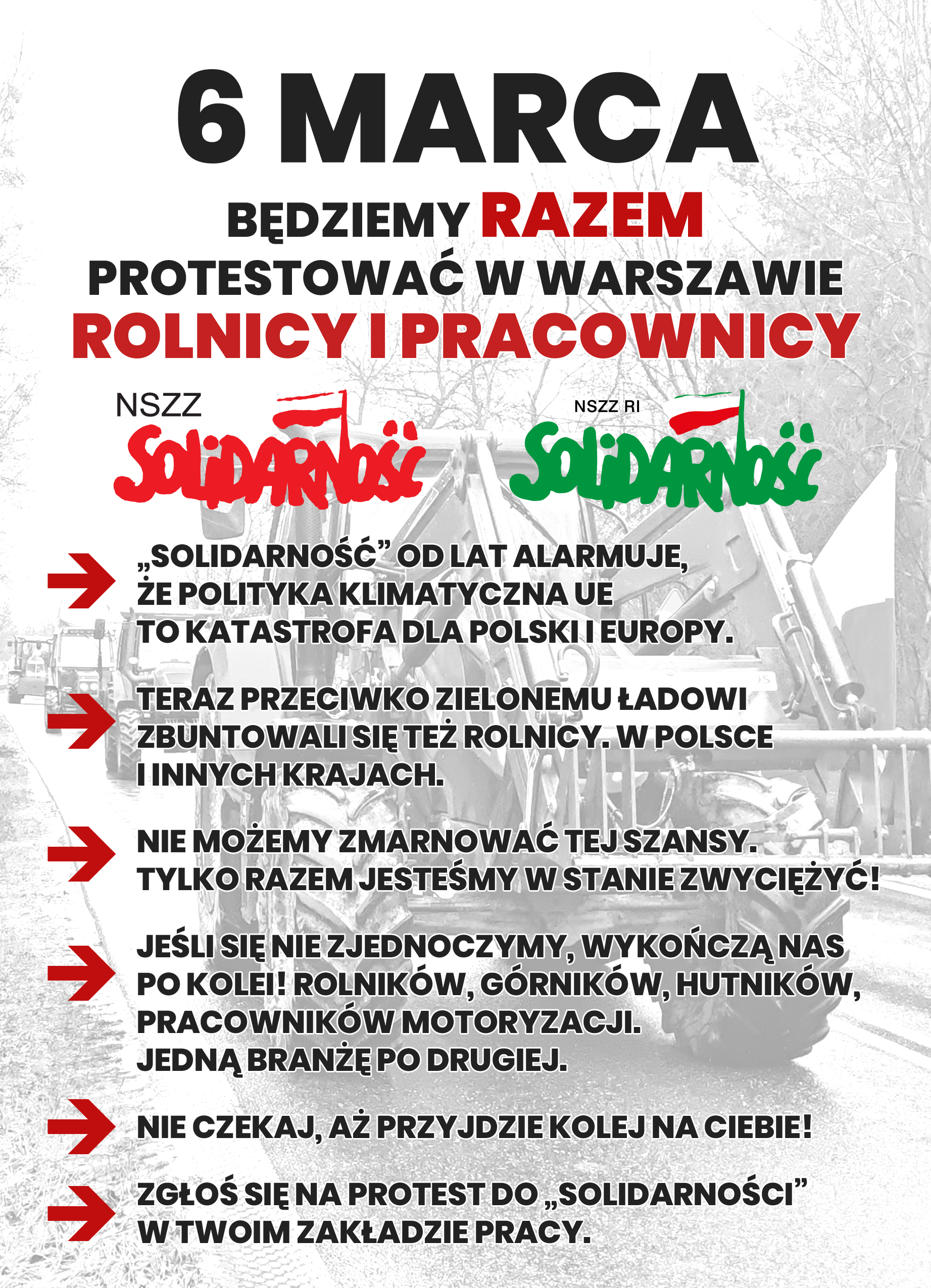 ZAPRASZAMY WSZYSTKICH ROLNIKÓW, ZWIĄZKI I ORGANIZACJE ROLNICZE ORAZ WSZYSTKIE GRUPY SPOŁECZNE I ZAWODOWE NA WSPÓLNĄ MANIFESTACJĘ !