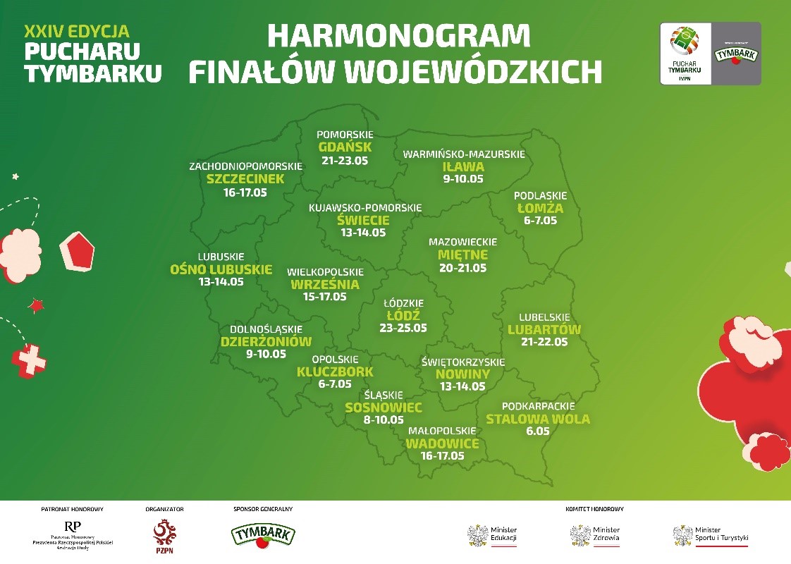 Finał Ogólnopolski w Warszawie i kibicowanie podczas meczu Polska-Turcja, a także możliwość walki o Wielki Finał na PGE Narodowym – oto, czego mogą się spodziewać finaliści XXIV edycji Pucharu Tymbarku. Zanim jednak poznamy zwycięzców Finału Ogólnopolskiego, czekają nas zmagania na poziomie wojewódzkim. Od 6 do 25 maja rozegranych zostanie 16 finałów wojewódzkich, podczas których poznamy najlepsze zawodniczki i najlepszych zawodników w trzech kategoriach wiekowych. Wzorem lat ubiegłych kategoria U-8 kończy zmagania na poziomie wojewódzkim.