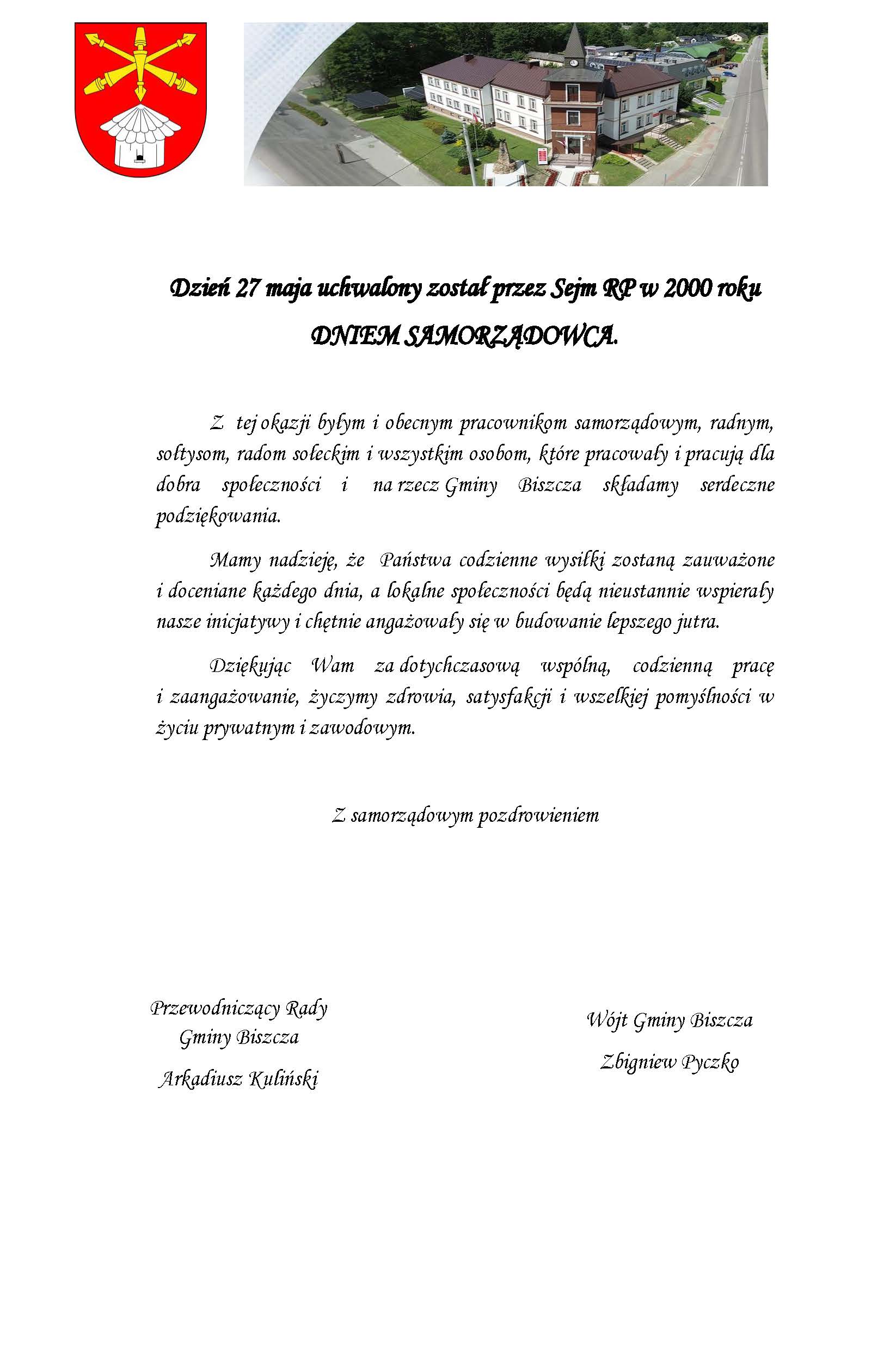 Dzień 27 maja uchwalony został przez Sejm RP w 2000 roku DNIEM SAMORZĄDOWCA.