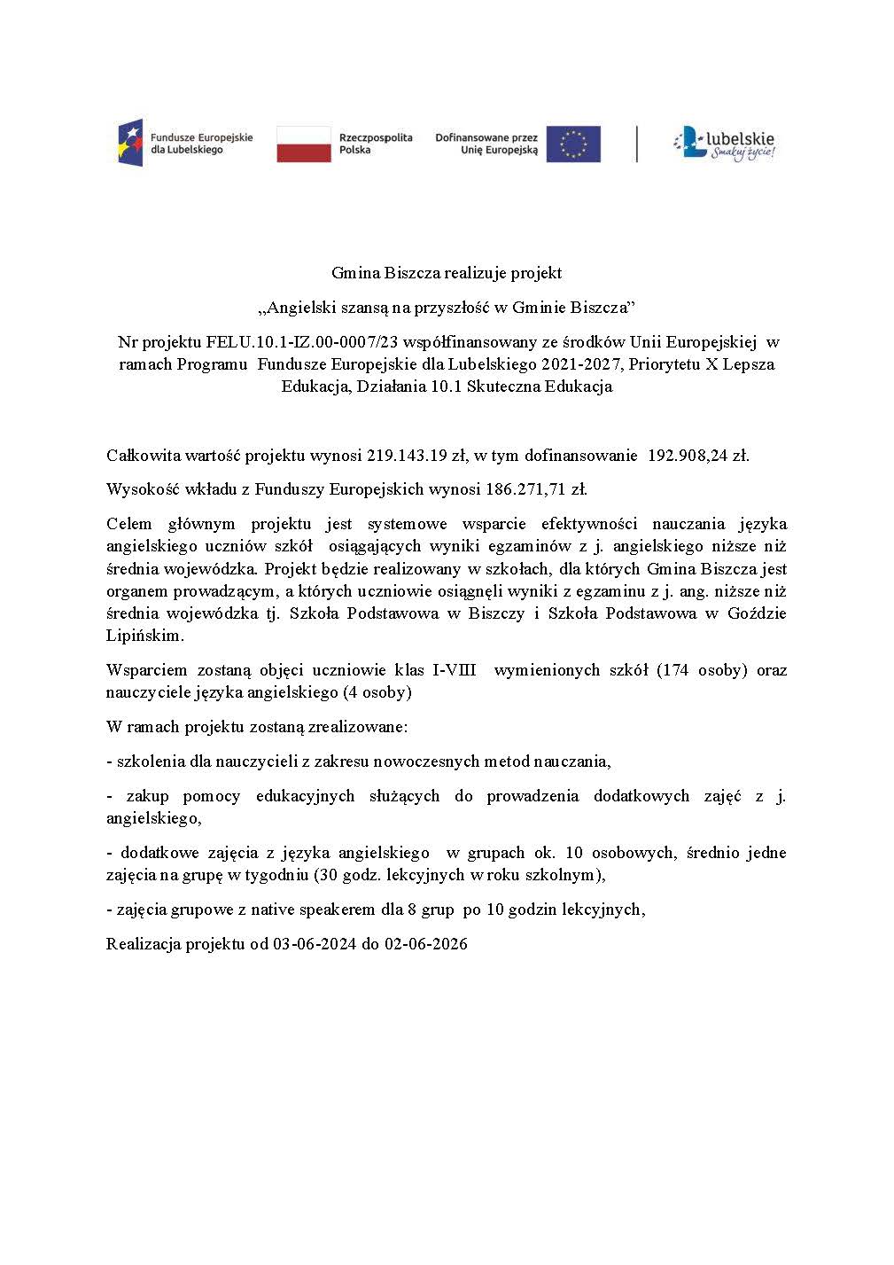 Angielski szansą na przyszłość w Gminie Biszcza