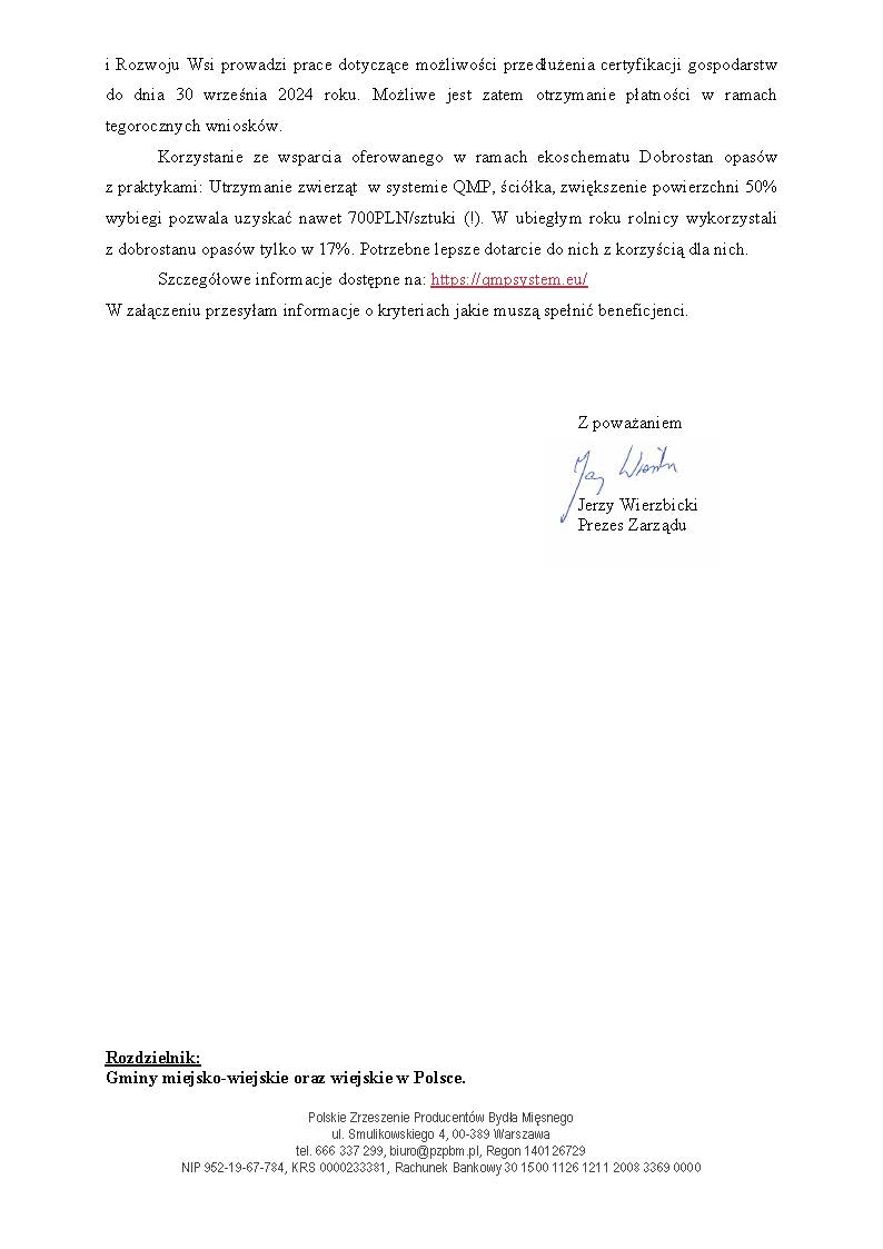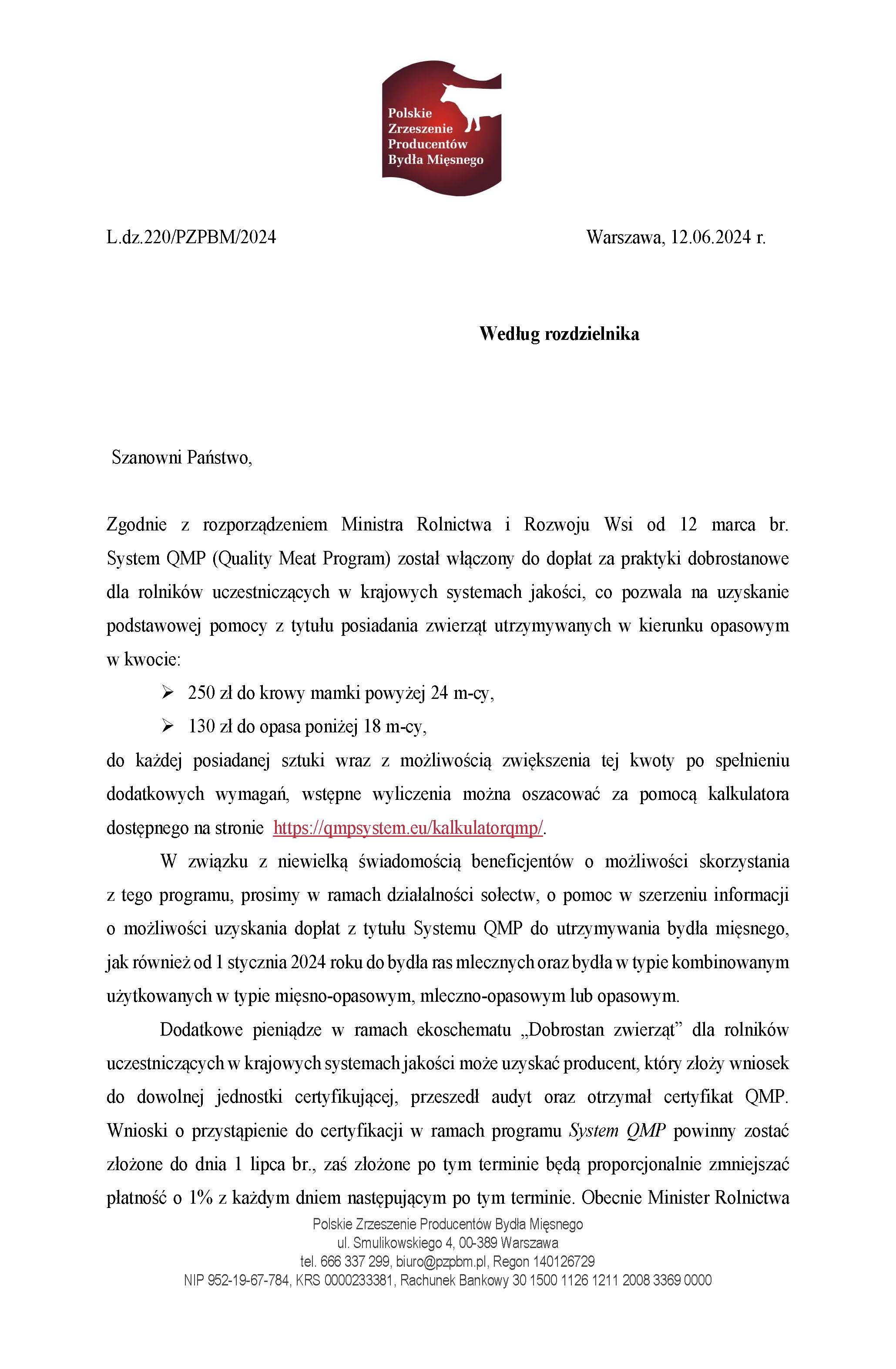 Informacja Polskiego Zrzeszenia Producentów Bydła Mięsnego