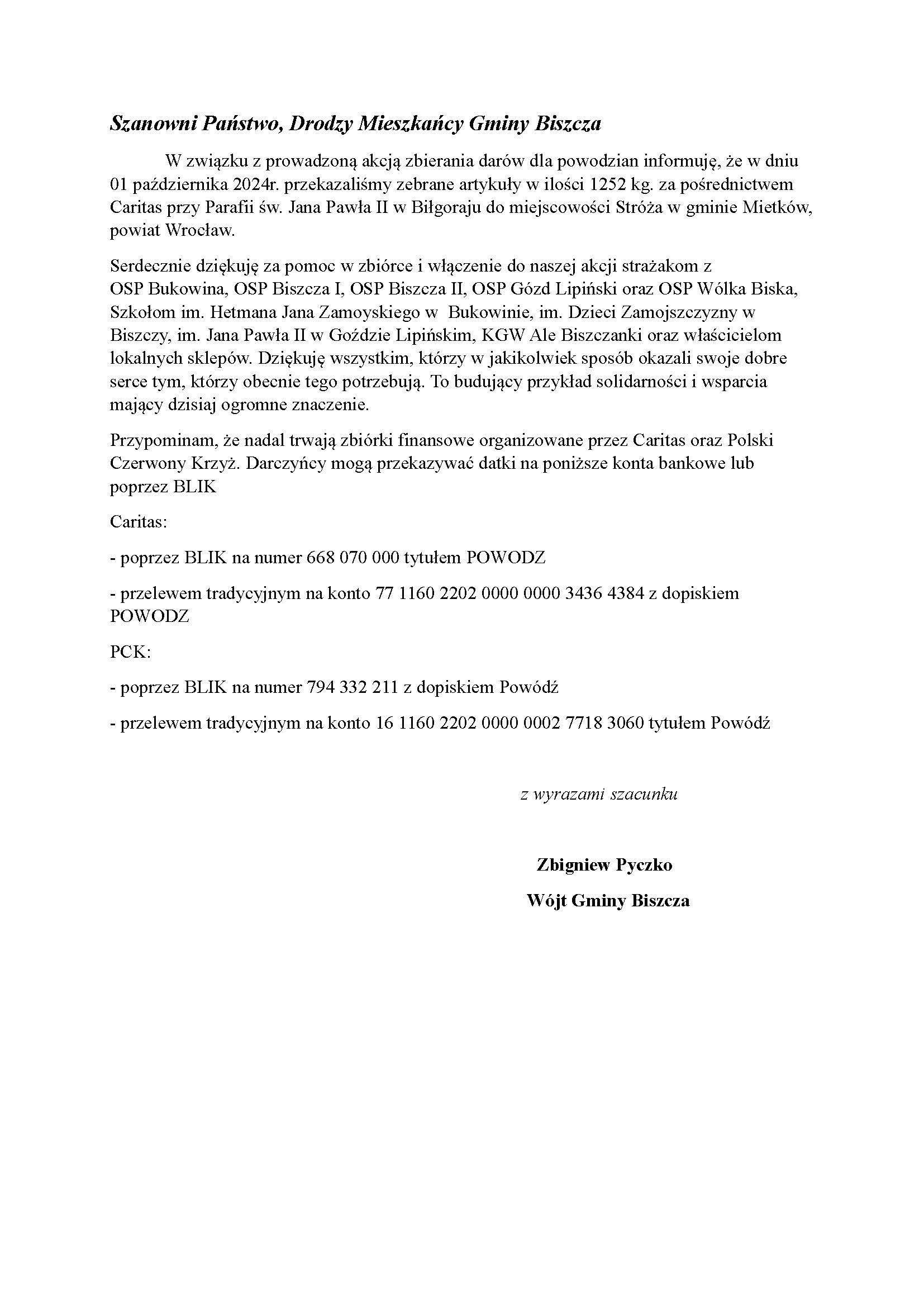 Szanowni Państwo, Drodzy Mieszkańcy Gminy Biszcza 2024-10-04 Fotorelacja: https://www.biszcza.pl/galeria/zdjecia-z-wydarzen-gminnych/357 « powrót