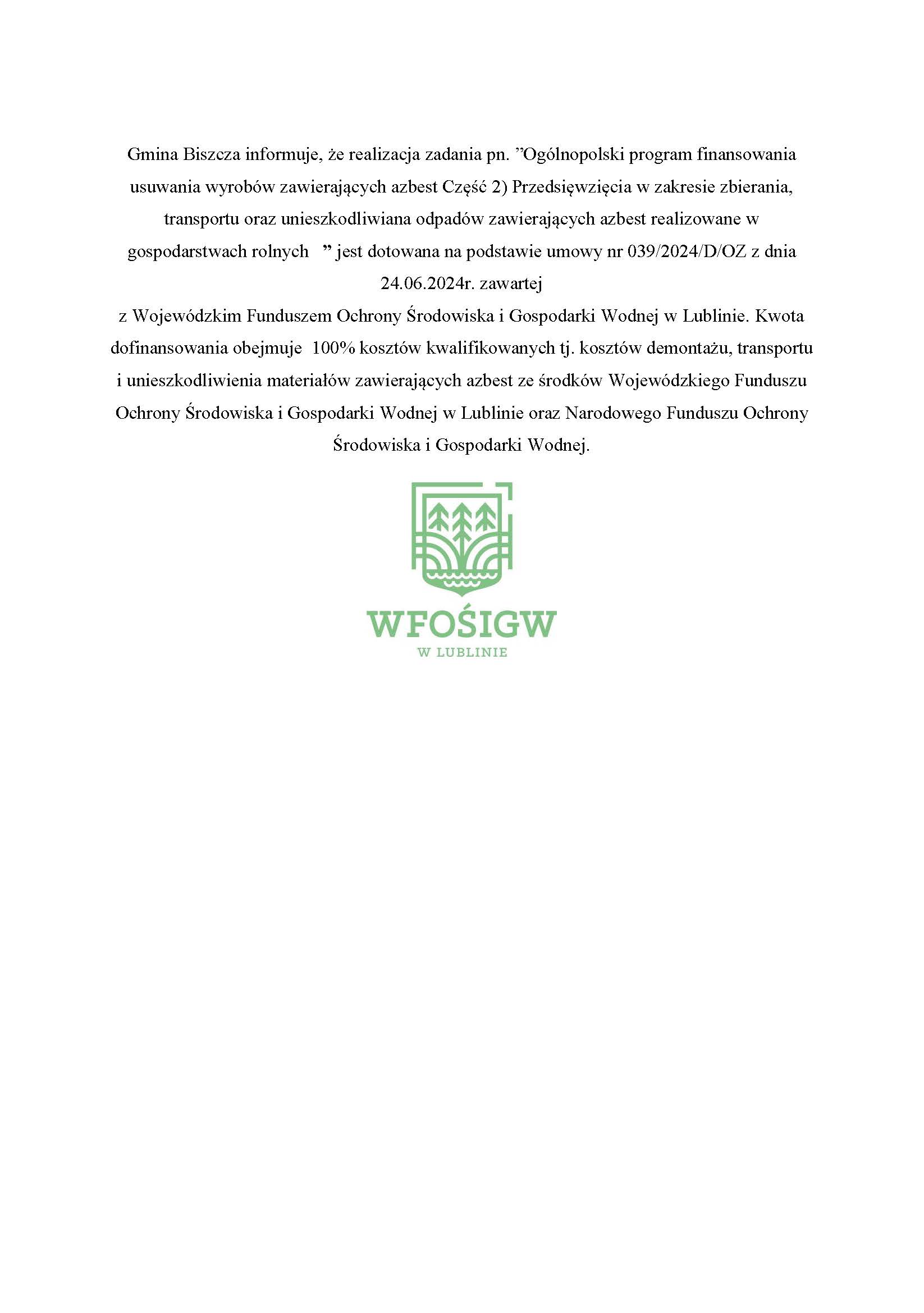 Poprawa stanu wód powierzchniowych i podziemnych na terenie Gminy Biszcza poprzez budowę 87 przydomowych oczyszczalni ścieków