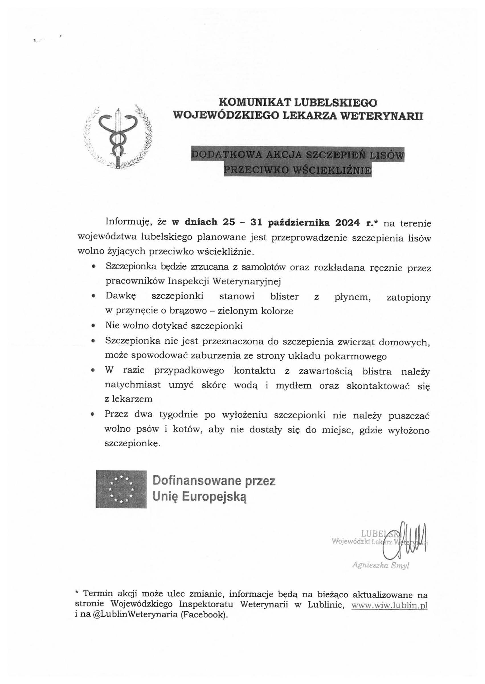 Komunikat Lubelskiego Wojewódzkiego Lekarza Weterynarii