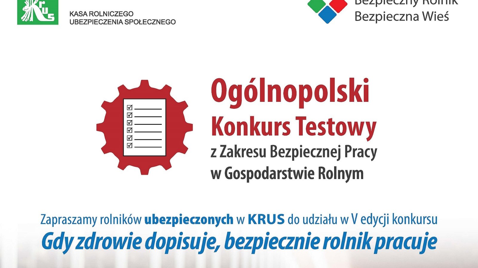 Zapraszamy rolników do udziału w V Ogólnopolskim Konkursie Testowym z Zakresu Bezpiecznej Pracy w Gospodarstwie Rolnym „Gdy zdrowie dopisuje, bezpiecznie rolnik pracuje".