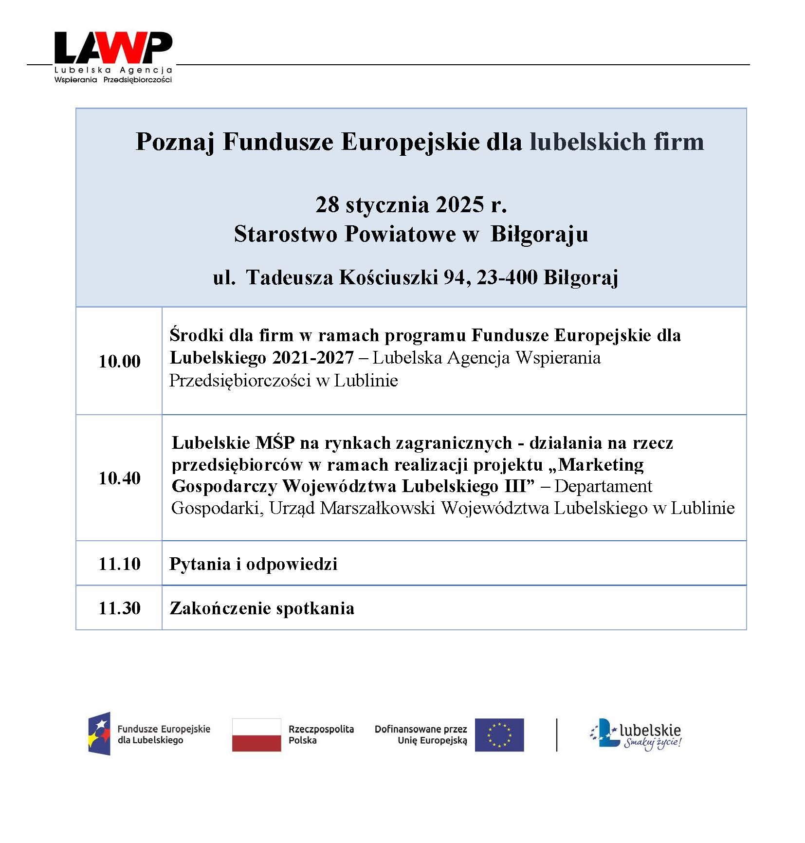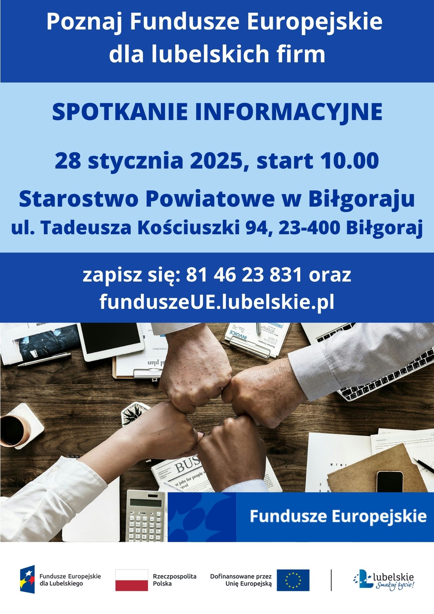 Poznaj Fundusze Europejskie dla lubelskich firm! - 28 stycznia 2025 r. Biłgoraj