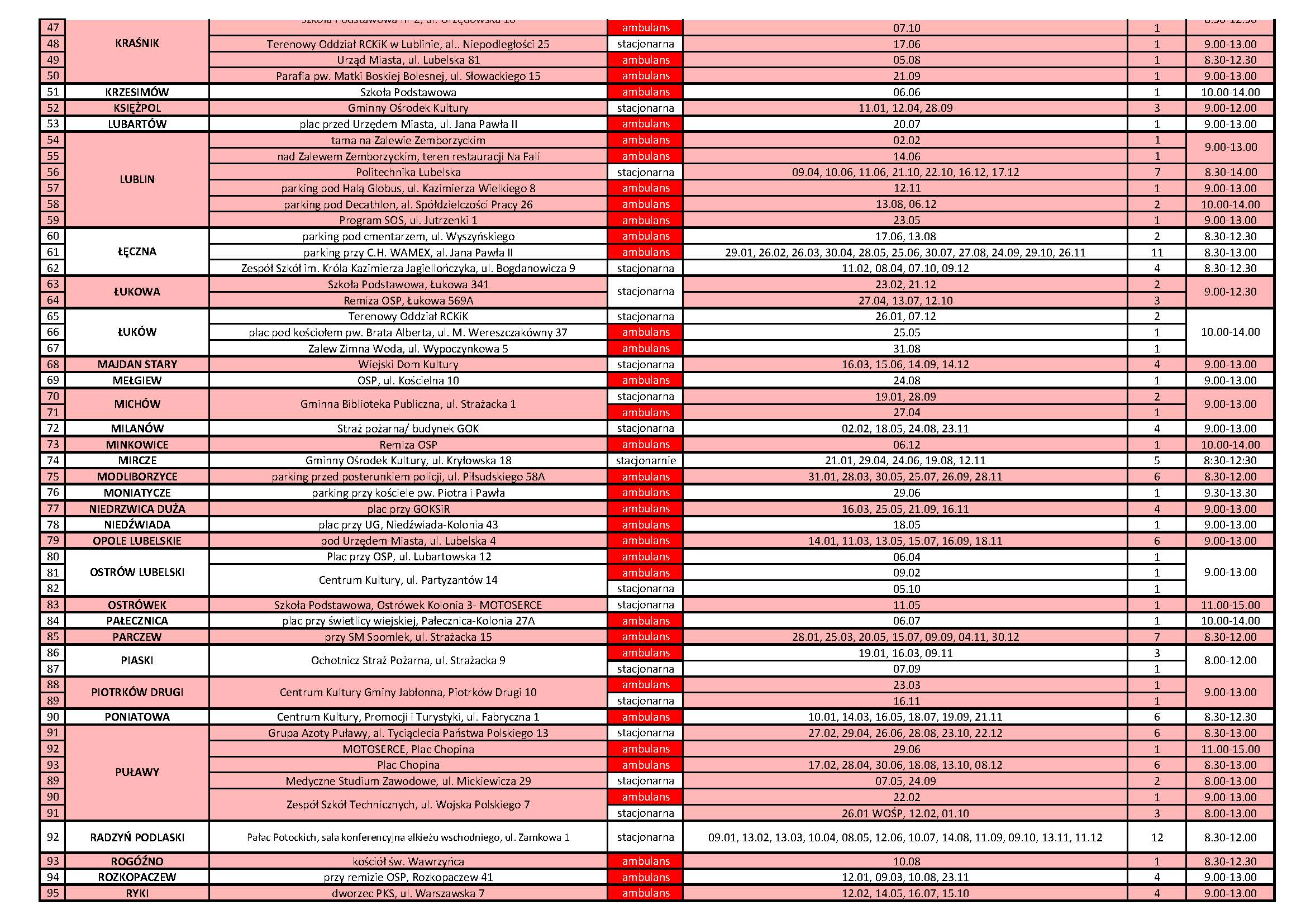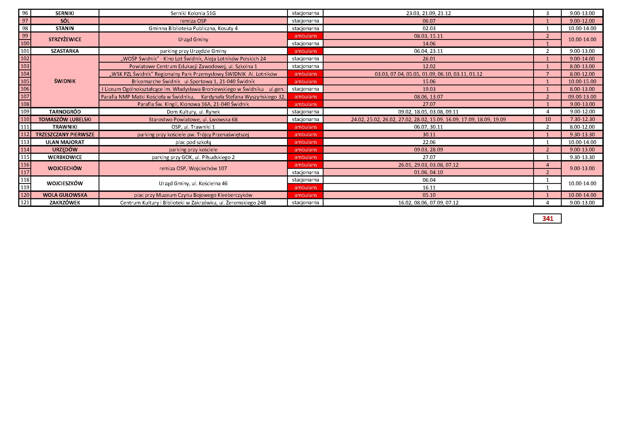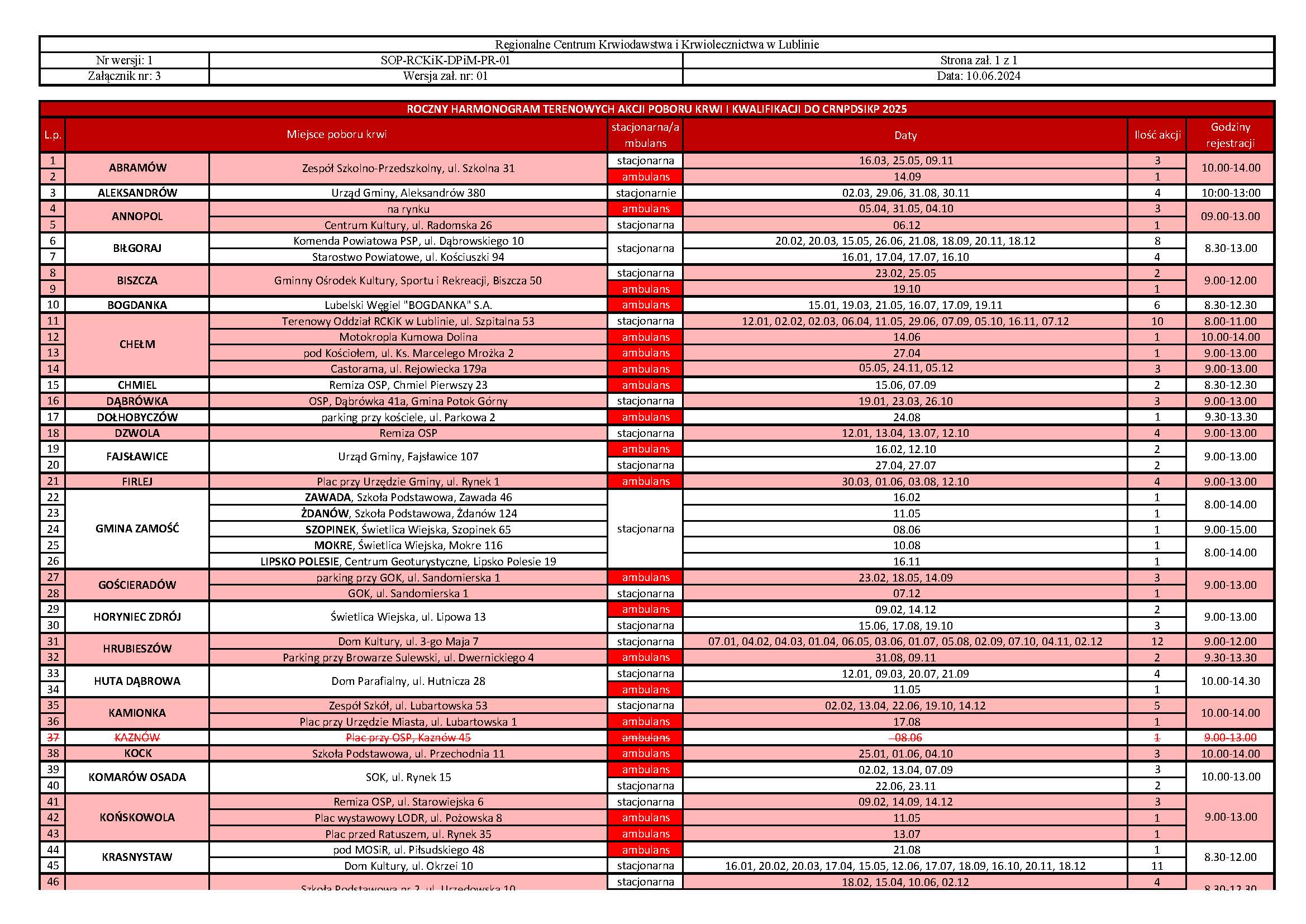 Harmonogram stałych akcji terenowego poboru krwi w woj. Lubelskim planowanych na 2025 rok. 2025-01-21 « powrót