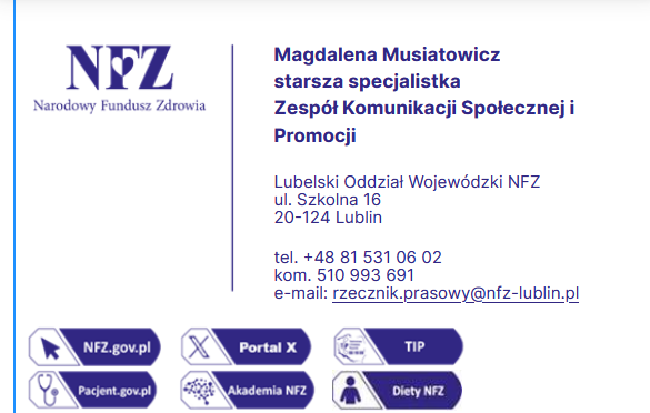 Więcej informacji o programie raka szyjki macicy można znaleźć na stronie internetowej Lubelskiego Oddziału Wojewódzkiego NFZ: