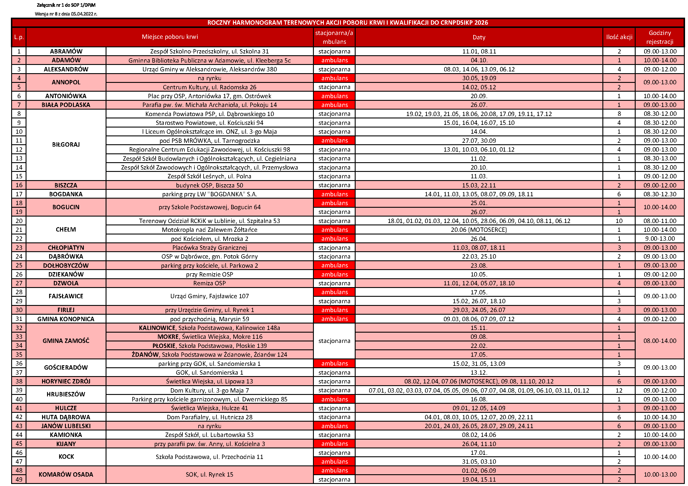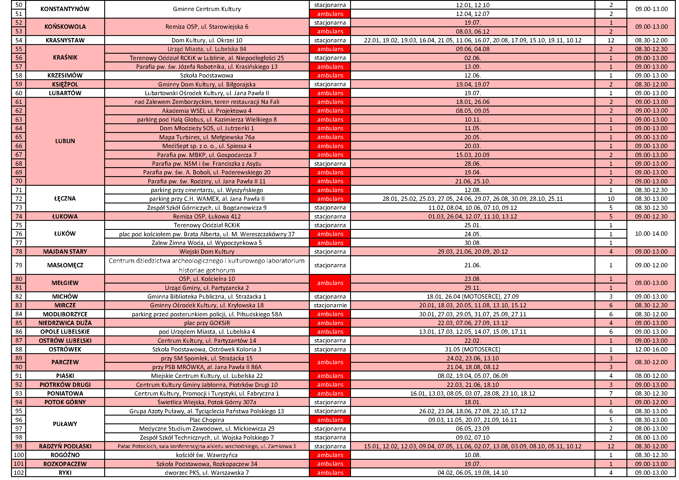 Regionalne Centrum Krwiodawstwa i Krwiolecznictwa w Lublinie zaprasza do udziału w terenowych akcjach poboru krwi