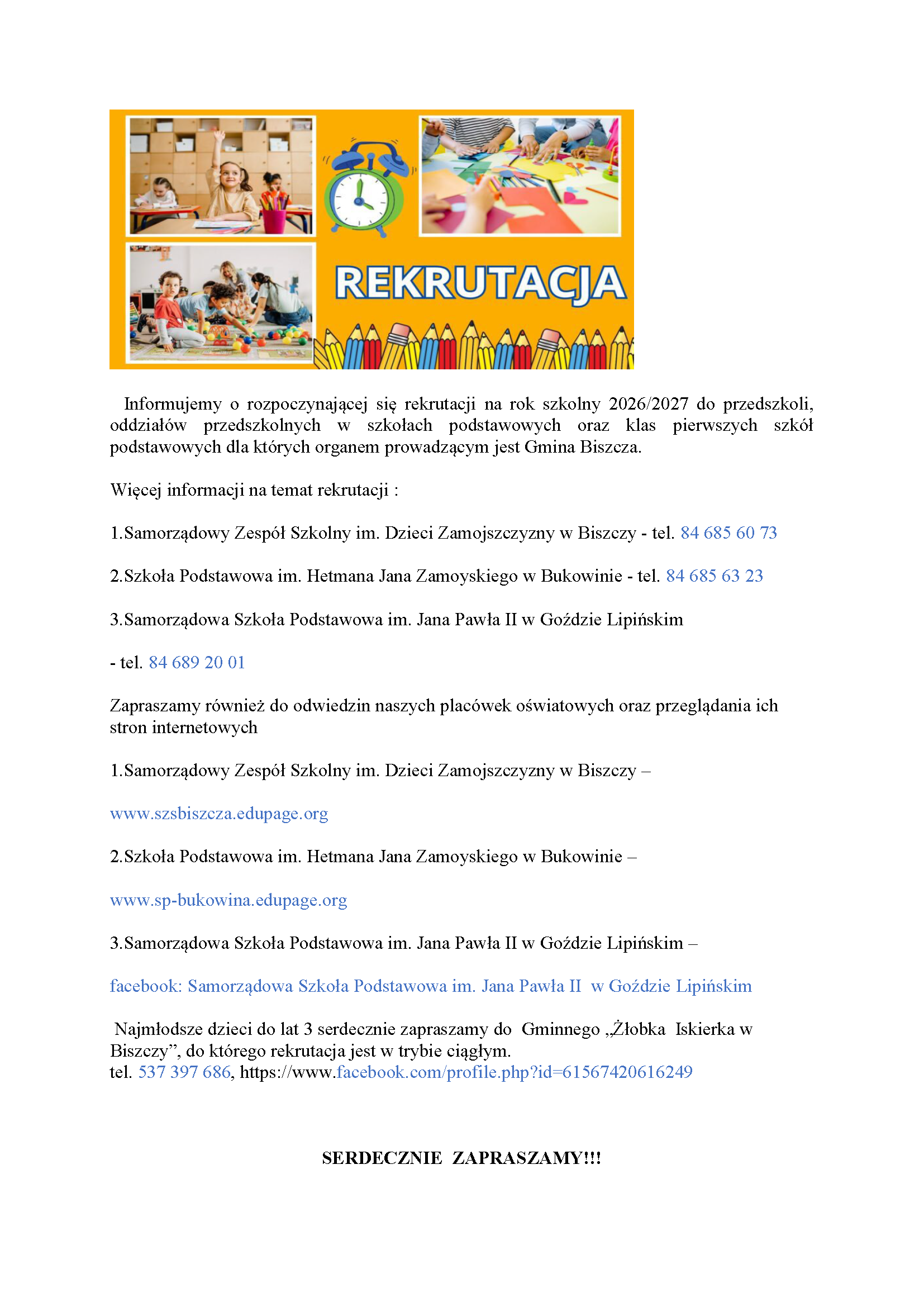 Rekrutacja na rok szkolny 2026/2027 do przedszkoli, oddziałów przedszkolnych