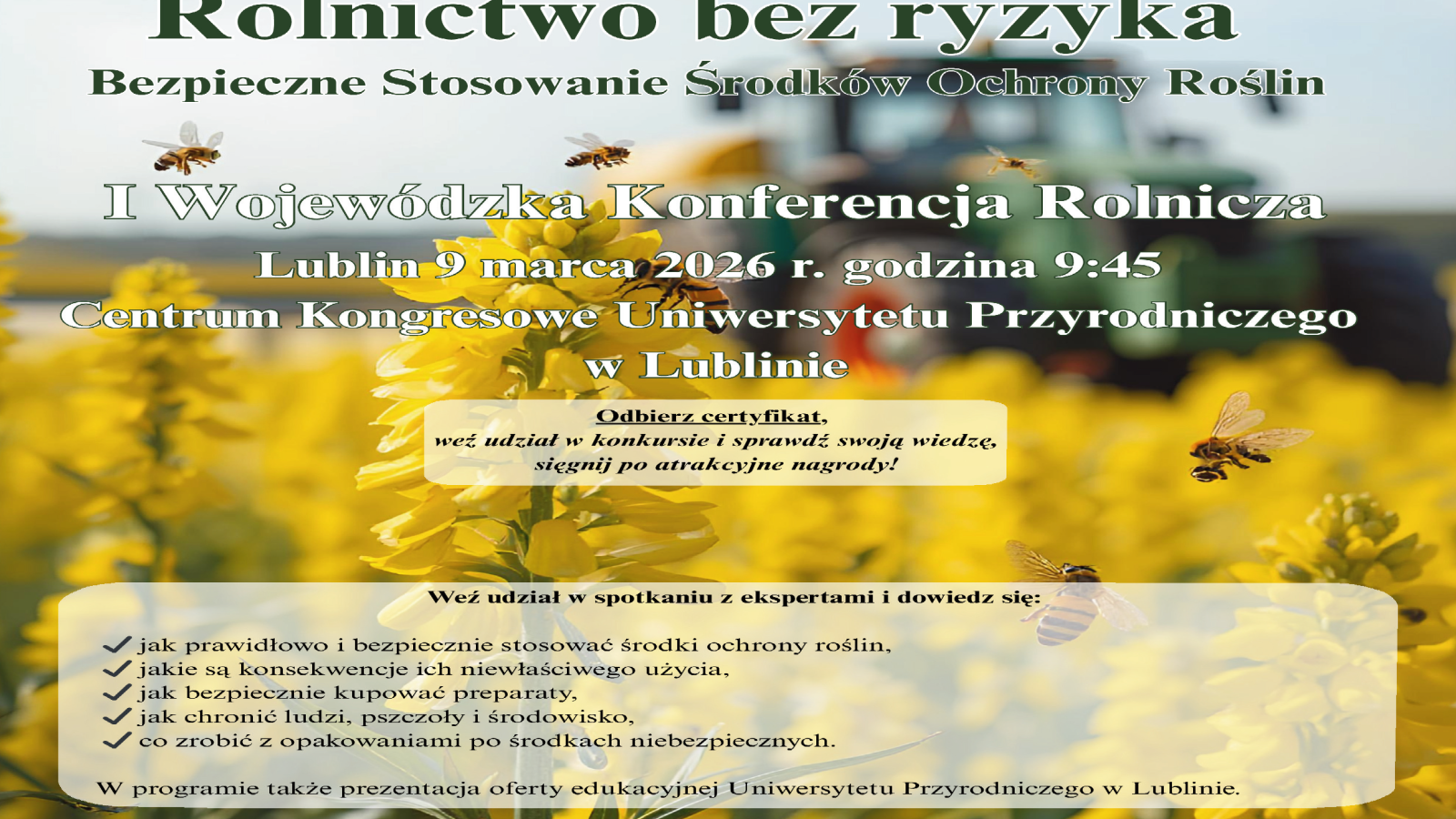 Pierwsza Wojewódzka Konferencja Rolnicza „Rolnictwo Bez Ryzyka – Bezpieczne Stosowanie Środków Ochrony Roślin”. 2026-03-02 « powrót