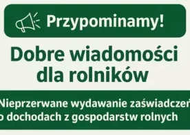 2025-09-10 Przypominamy! Nieprzerwane wydawanie zaświadczeń o dochodach z gospodarstw rolnych – zmiana w ustawie POŚ Od stycznia tego roku obowiązują nowe zasady w zakresie terminu ustalania przeciętnego miesięcznego dochodu z gospodarstwa rolnego, co zapewnia ciągłość wydawania zaświadczeń o dochodach – bez konieczności oczekiwania na ogłoszenie danych przez GUS.