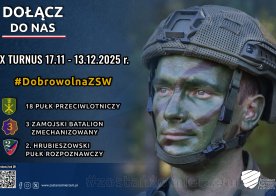 2025-09-10 WOLNE MIEJSCA NA SZKOLENIE PODSTAWOWE! DOŁĄCZ DO VIII TURNUSU DOBROWOLNEJ ZASADNICZEJ SŁUŻBY WOJSKOWEJ Dla wszystkich, którzy myślą o związaniu swojej przeszłości z wojskiem lub chcą zdobyć cenne umiejętności militarne, otwiera się wyjątkowa możliwość. W Wojskowym Centrum Rekrutacji w Zamościu trwają zapisy na: VIII turnus Dobrowolnej Zasadniczej Służby Wojskowej, który odbędzie się w dniach 29.09 - 25.10.2025 r. w 18 Pułku Przeciwlotniczym Sitaniec Wolica, 2 Hrubieszowskim Pułku Rozpoznawczym IX turnus Dobrowolnej Zasadniczej Służby Wojskowej, który odbędzie się w dniach 17.11 - 13.12.2025 r. w 18 Pułku Przeciwlotniczym Sitaniec Wolica, 3 Zamojskim Batalionie Zmechanizowanym oraz 2 Hrubieszowskim Pułku Rozpoznawczym.