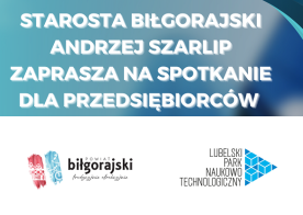 2023-02-09 Spotkanie dla przedsiębiorców W imieniu Andrzeja Szarlipa Starosty Biłgorajskiego serdecznie zapraszamy na spotkanie zorganizowane dla przedsiębiorców, księgowych, pracowników wydziałów ds. inwestycji, przyszłych i obecnych przedsiębiorców. Spotkanie odbędzie się 20 lutego o godzinie 10.00 w sali konferencyjnej Starostwa Powiatowego w Biłgoraju. Tematem spotkania będzie rozwój i finansowanie własnej działalności, innowacyjne usługi doradcze dla firm, inkubator technologiczny - oferta dla młodych przedsiębiorców.