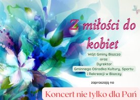2023-03-03 Zapraszamy na koncert "Z Miłości do Kobiet" Wójt Gminy Biszcza oraz Dyrektor Gminnego Ośrodka Kultury, Sportu i Rekreacji w Biszczy zapraszają na "Koncert nie tylko dla Pań", w niedzielę 12 marca o godzinie 15:00 w Domu Weselnym Euforia w Bukowinie.
