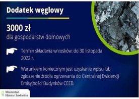 2022-08-18 Informacja dotycząca dodatku węglowego Wójt Gminy Biszcza informuje, że wnioski o wypłatę jednorazowego dodatku węglowego można składać do 30 listopada 2022 r. elektronicznie (na skrzynkę ePUAP GOPS w Biszczy – adres skrytki /gopsbiszcza/SkrytkaESP, wniosek musi być podpisany kwalifikowanym podpisem elektronicznym lub profilem zaufanym) oraz w siedzibie Gminnego Ośrodka Pomocy Społecznej w Biszczy, Biszcza 90 (świetlica ISKIERKA).
