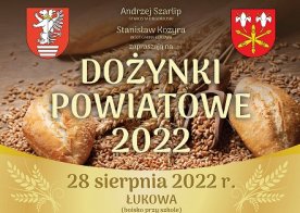 2022-08-22 Łukowa - Dożynki Powiatu Biłgorajskiego Starostwo Powiatowe w Biłgoraju oraz Gmina Łukowa zaprasza na dożynki powiatu biłgorajskiego. Odbędą się one 28 sierpnia 2022 r. na boisku przy Szkole Podstawowej w Łukowej. Gospodarzem uroczystości będzie starosta biłgorajski Andrzej Szarlip oraz Wójt Gminy Łukowa Stanisław Kozyra.