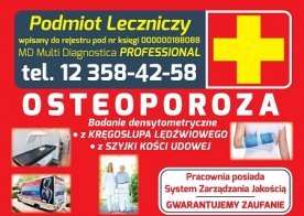 2022-06-24 BADANIE OSTEOPOROZY 30 czerwiec 2022 – Biłgoraj – przy Szpitalu Arion ul. Dr Pojaska 5 Mobilna pracownia densytometryczna – OSTEOBUS Zapisy telefonicznie 512 351 600. Diagnostykę przeprowadzi personel MD Multi Diagnostica z Krakowa.