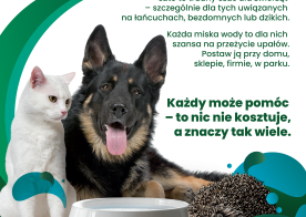 2025-08-18 Miska życia – pomóż zwierzętom przetrwać upały Lato to trudny czas dla zwierząt – szczególnie uwiązanych na łańcuchach, bezdomnych i dzikich. Każda miska wody to dla nich szansa na przeżycie upałów. Postaw ją przy domu, sklepie, firmie, w parku. Każdy może pomóc – to nic nie kosztuje, a znaczy tak wiele. Dla Ciebie to chwila, dla nich – życie.