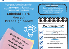 2022-04-01 Szanowni Państwo! Jest nam niezmiernie miło poinformować o realizowanym przez Lubelski Park Naukowo-Technologiczny S.A. projekcje „Lubelski Park Nowych Przedsiębiorców", którego celem jest zwiększenie liczby nowych i trwałych miejsc pracy w regionie poprzez stworzenie 66 nowych miejsc pracy w 55 nowopowstałych firmach. Projekt zakłada dostarczenie niezbędnej wiedzy 60 Uczestnikom/Uczestniczkom Projektu oraz udzielenie 55 bezzwrotnych dotacji w wysokości do maksymalnie 23 050,00 zł i wsparcia pomostowego w maksymalnej wysokości 2 800,00 zł przez okres 12 miesięcy.