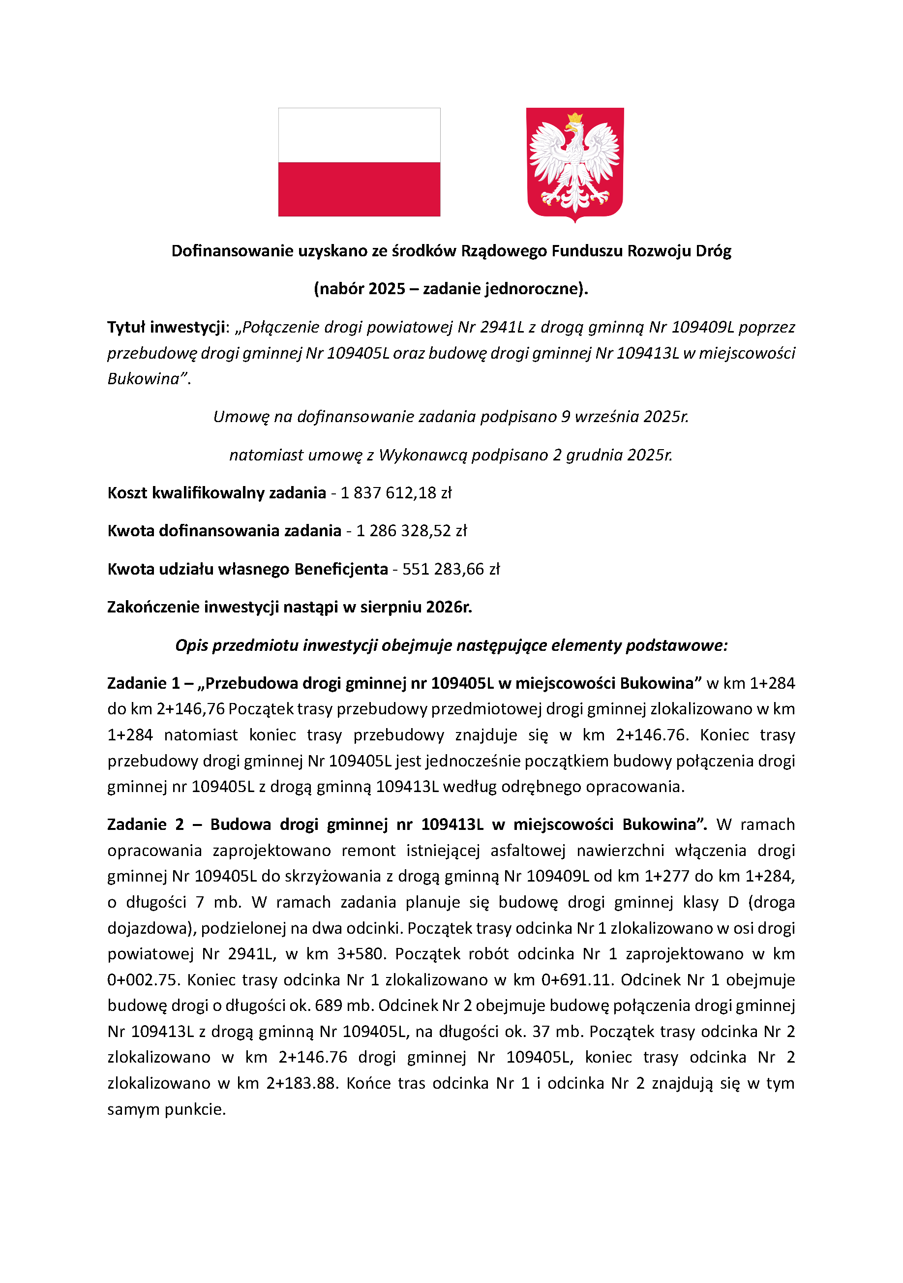 Połączenie drogi powiatowej nr 2941L z drogą gminną nr 109409L w miejscowości Bukowina